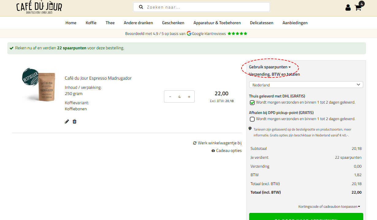 Puoi riscattare i tuoi punti fedeltà tramite il carrello per ottenere uno sconto sul tuo ordine. Questo è possibile solo se l'importo dell'ordine supera i €10,-. Nel carrello, in alto a destra, vedrai l'opzione "usa punti fedeltà" (sopra il blocco delle spese di spedizione) se hai abbastanza punti. Ogni punto fedeltà ha un valore di €0,01 e puoi scegliere tu stesso quanti punti utilizzare per ottenere lo sconto.